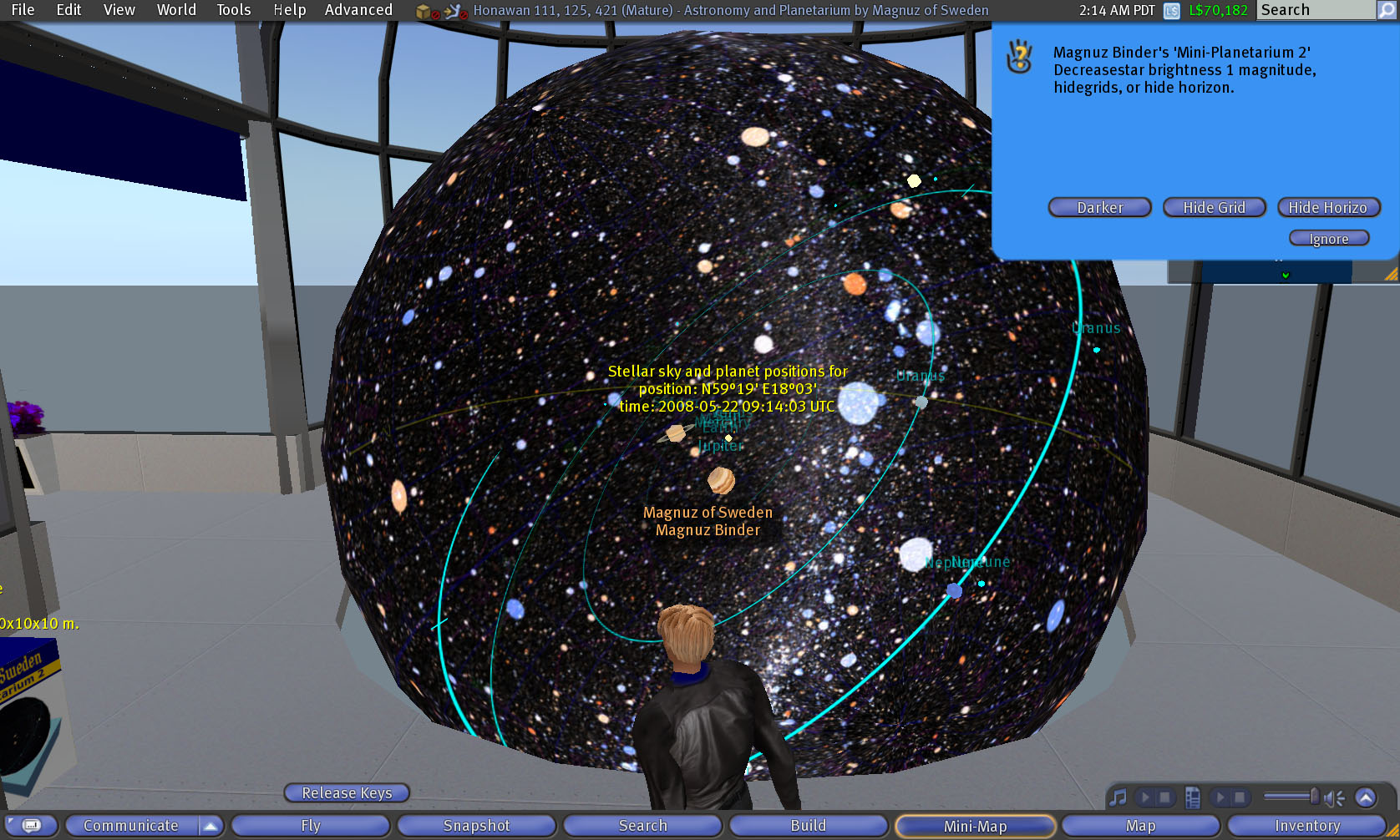AstroDemo1_007 size: 1676x1006 px, 209 kB description: view, object and avatar, mini-planetarium 2 and Magnuz Binder