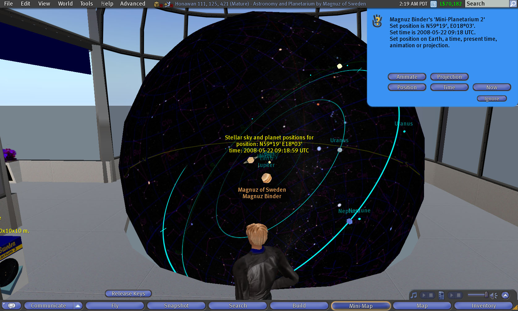 AstroDemo1_019 size: 1676x1006 px, 221 kB description: view, object and avatar, mini-planetarium 2 and Magnuz Binder