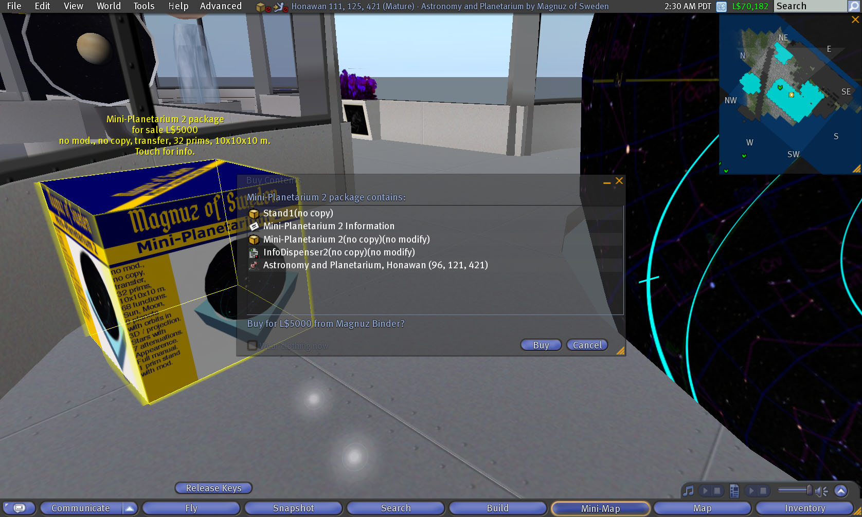 AstroDemo1_001 size: 1676x1006 px, 235 kB description: view, object and avatar, mini-planetarium 2 and Magnuz Binder